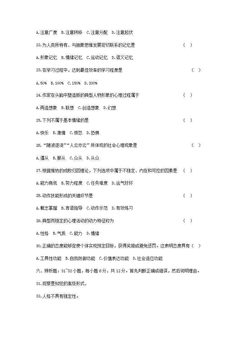 【文档预览】 无忧考网整理发布2017年山西成人高考专升本教育理论真题及答案(Word版),前五页预览如下: