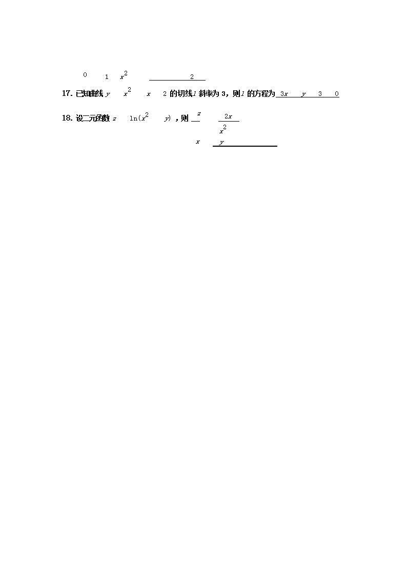 【文档名称】 2017年山西成人高考专升本高等数学(一)真题及答案(Word版).doc