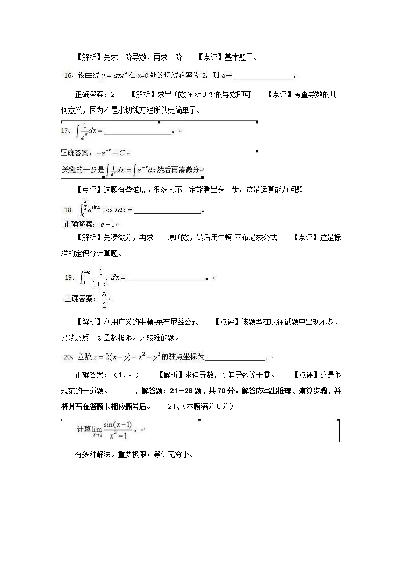 【文档预览】 无忧考网整理发布2017年山西成人高考专升本高等数学(二)真题及答案(Word版),前五页预览如下: