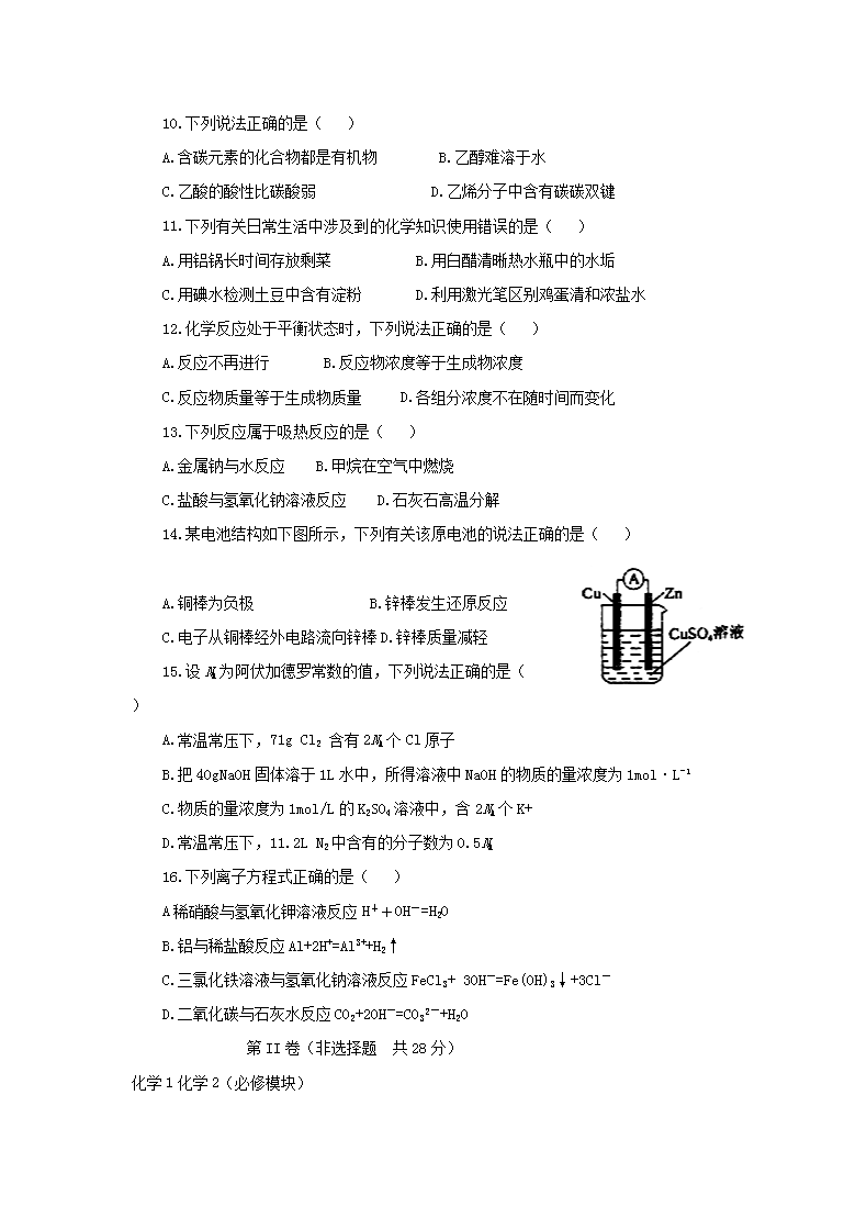 【文档名称】 2013年山东普通高中会考化学考试真题(Word版).doc