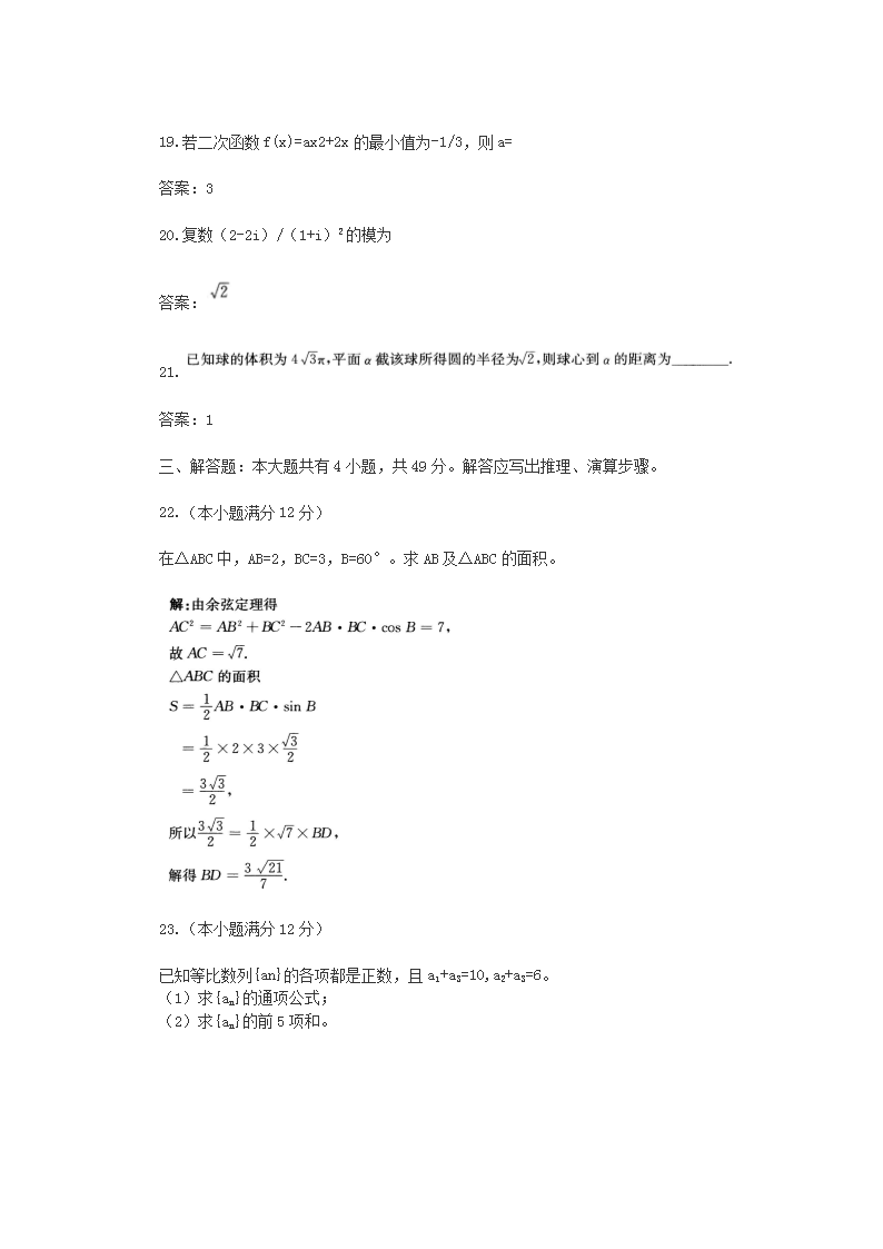 【文档名称】 2016年青海成人高考高起点数学理真题及答案(Word版).doc