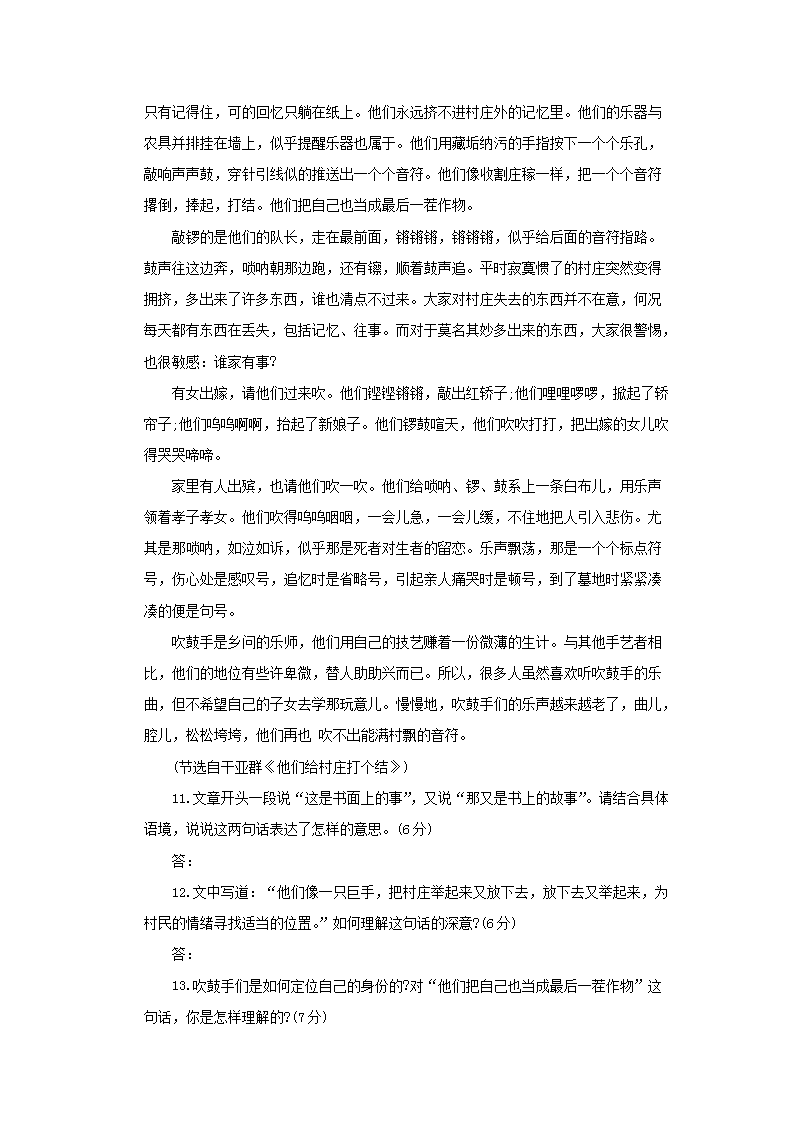 【文档名称】 2017年青海成人高考高起点语文真题及答案(Word版).doc