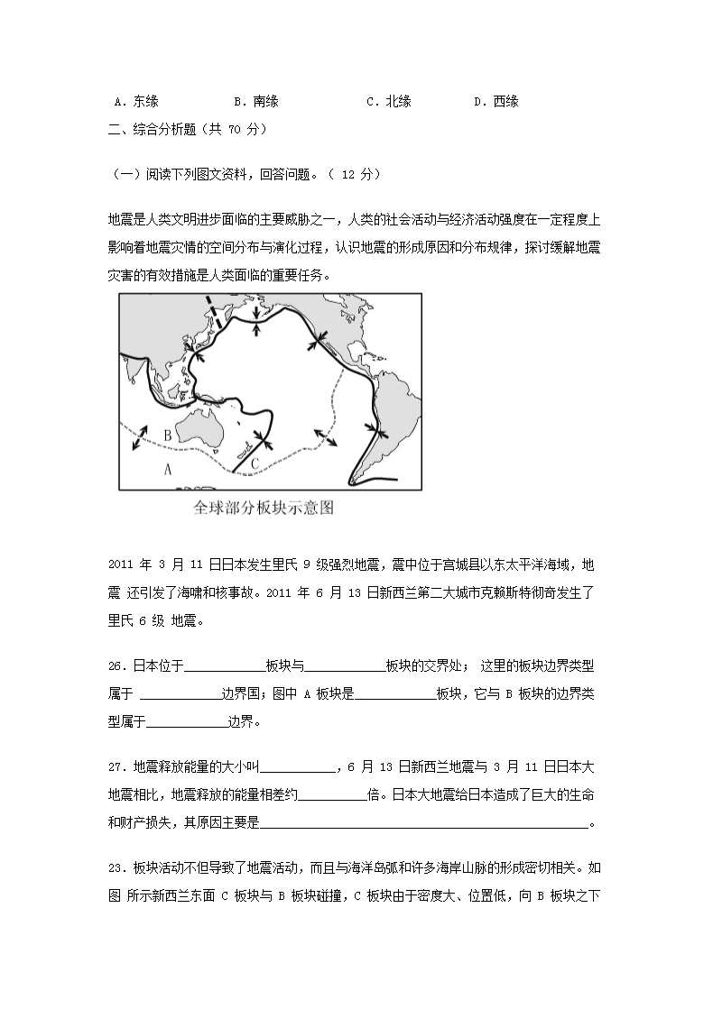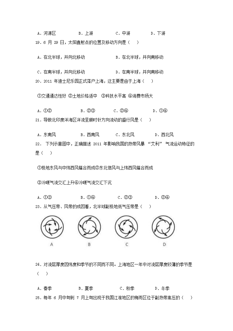 【文档名称】 2011年上海普通高中会考地理真题及答案(Word版).doc
