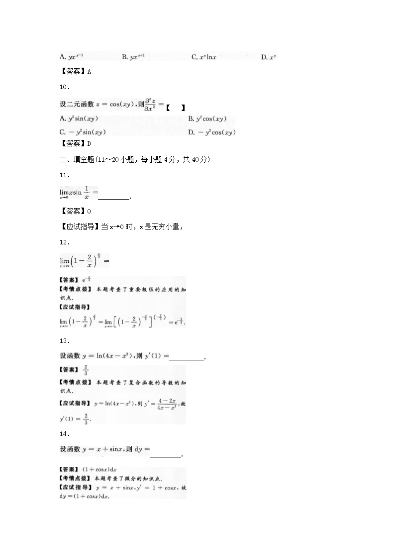 【文档预览】 无忧考网整理发布2015年内蒙古成人高考专升本高等数学二真题及答案(Word版),前五页预览如下:
