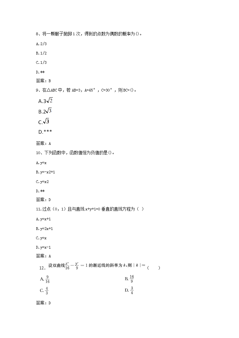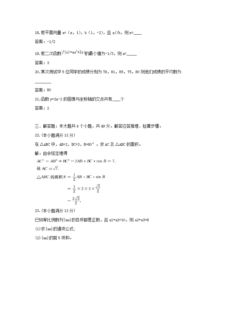 【文档名称】 2016年内蒙古成人高考高起点数学文真题及答案(Word版).doc