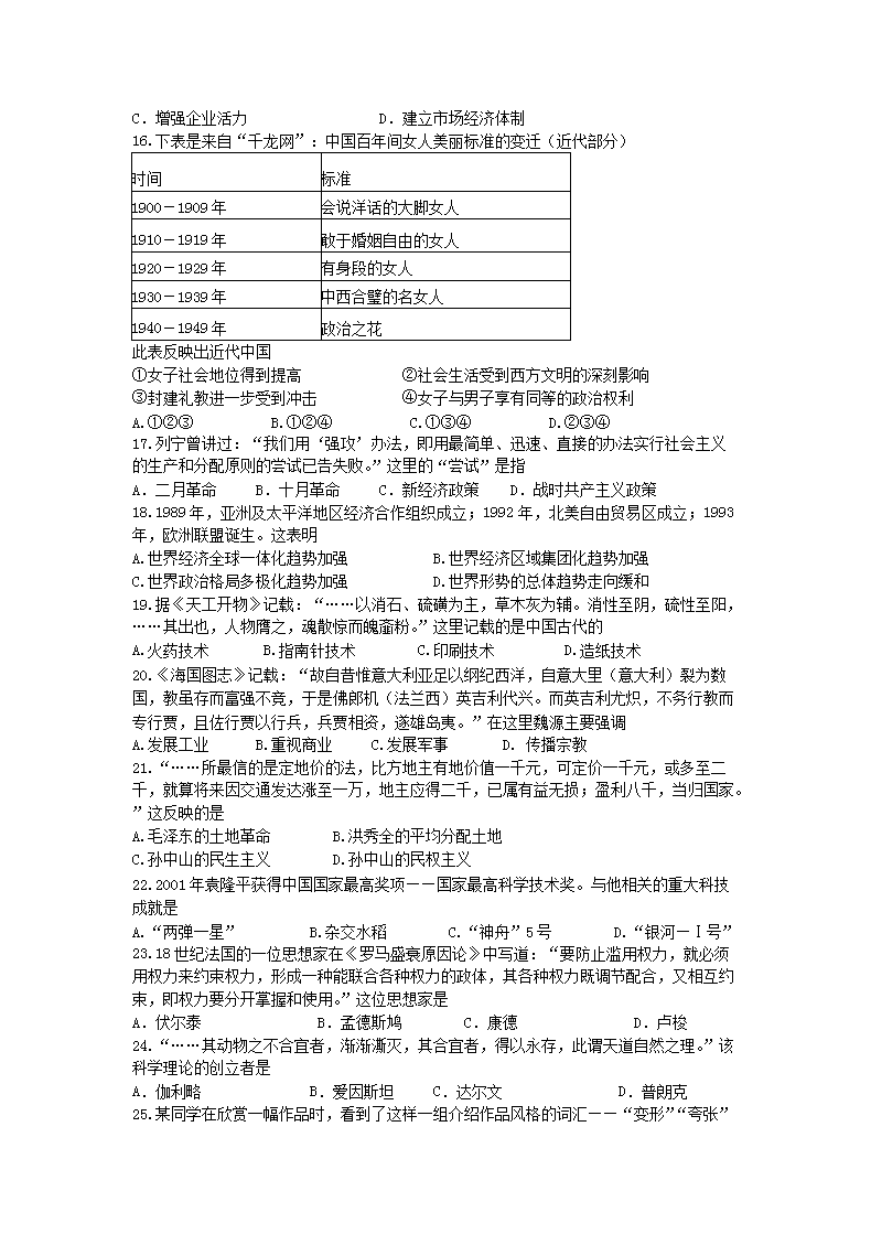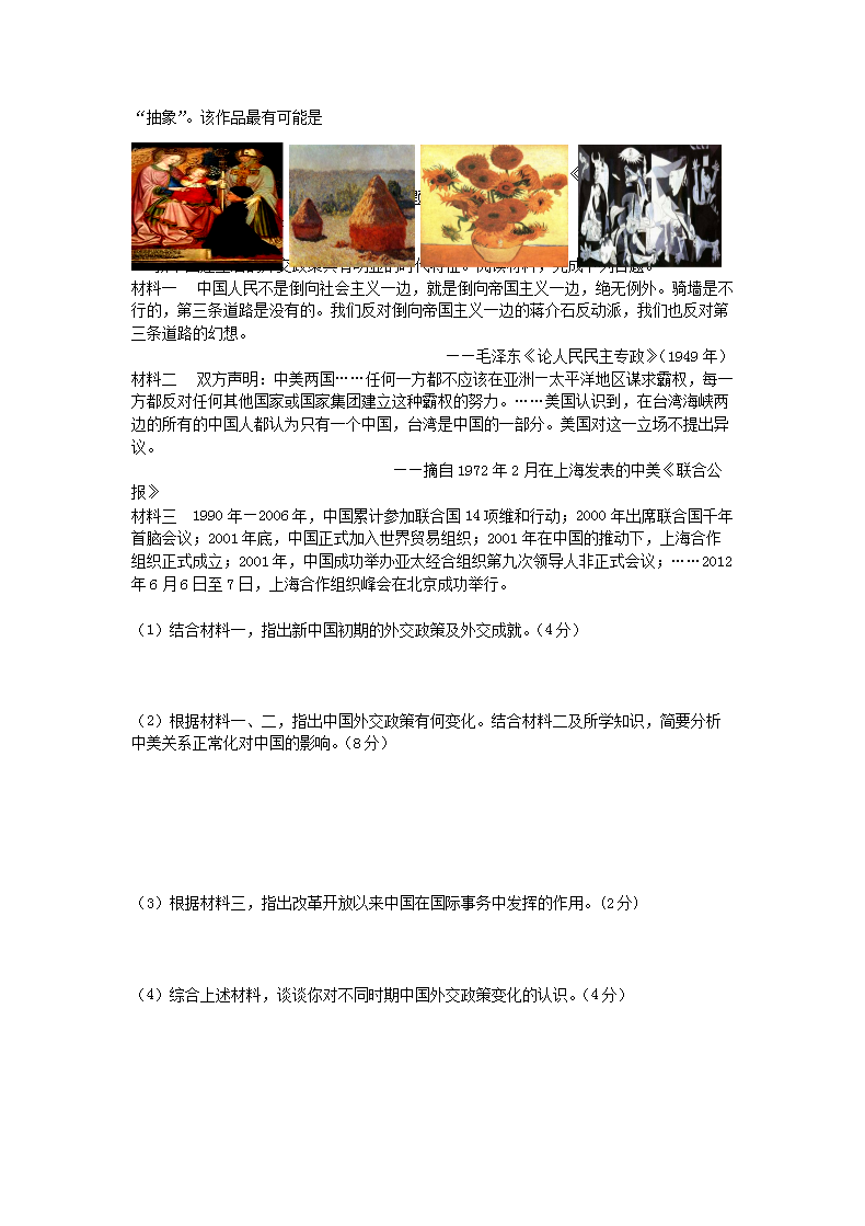 【文档名称】 2012年山西普通高中会考历史真题及答案(Word版).doc