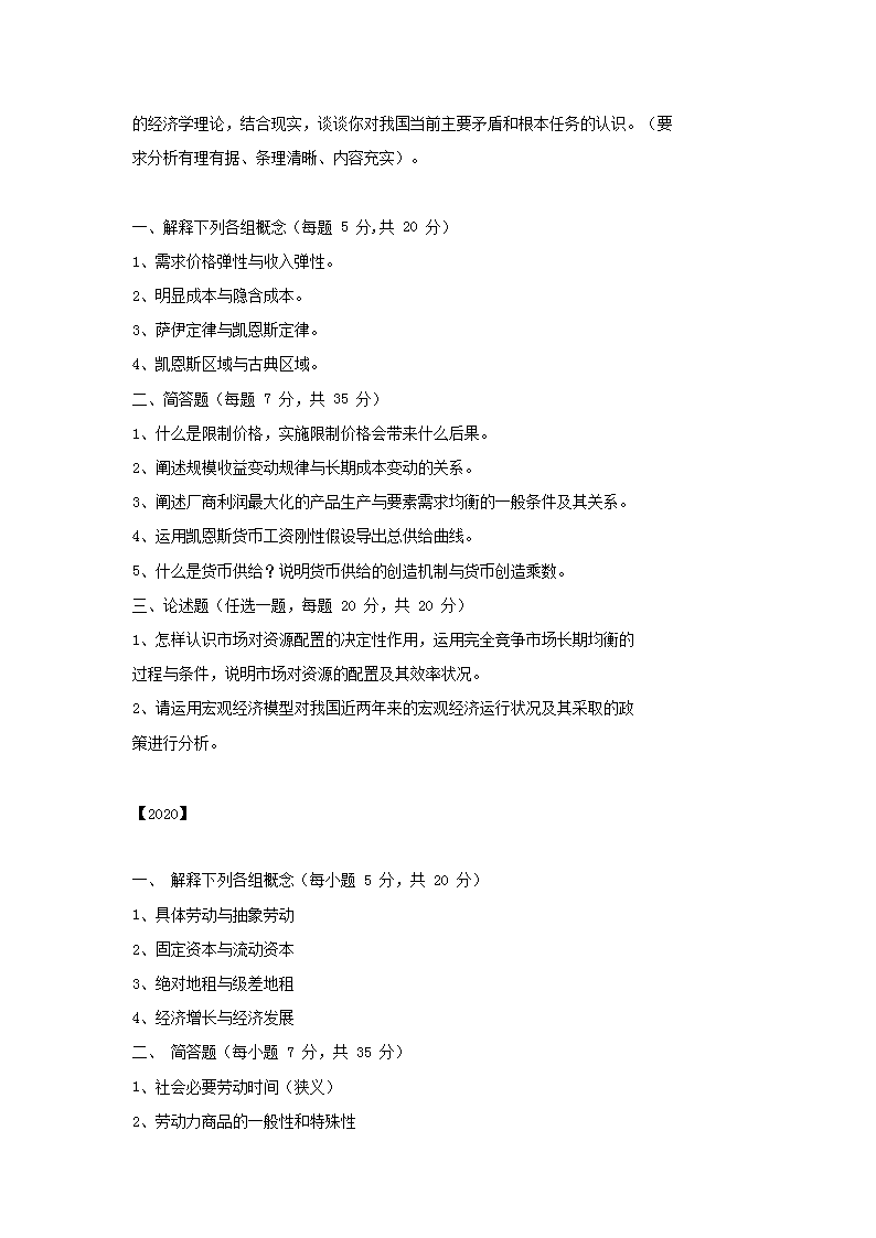 【文档预览】 无忧考网整理发布2018-2020年天津商业大学政治经济学考研真题(Word版),前五页预览如下:
