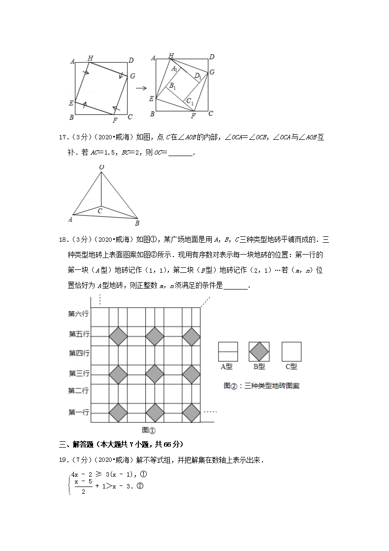 【文档名称】 2020山东省威海市中考数学真题及答案(Word版).doc