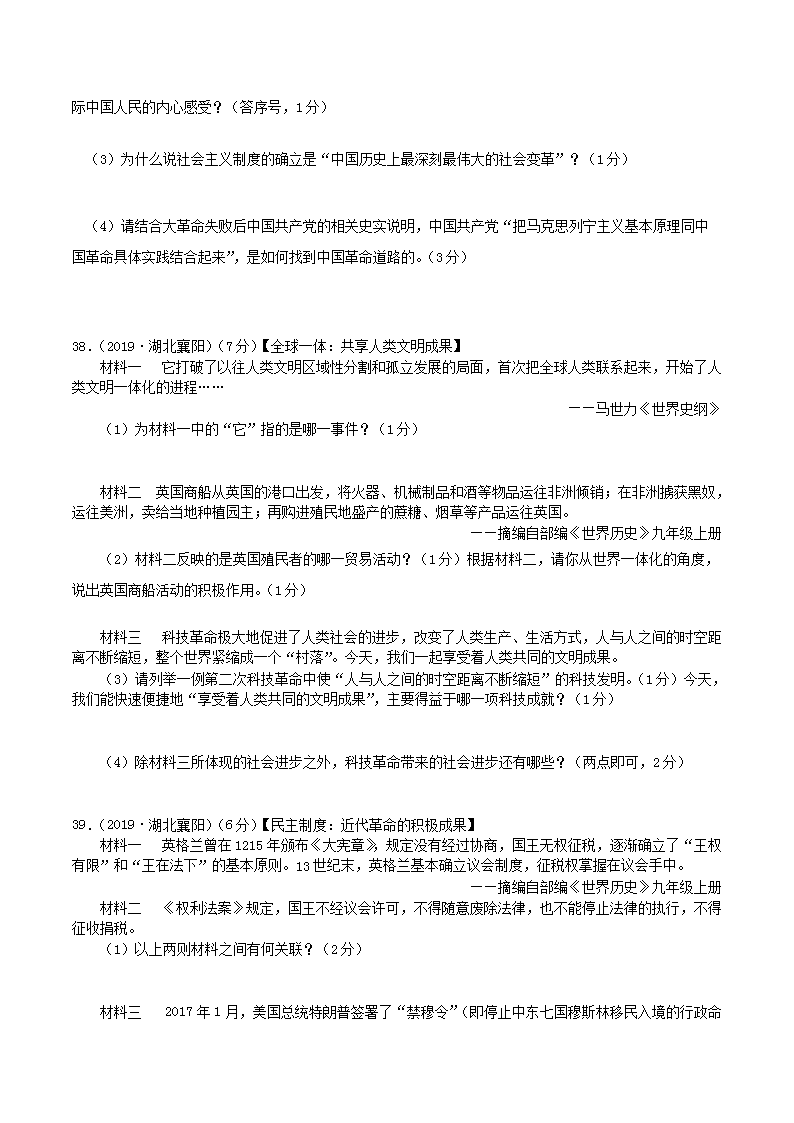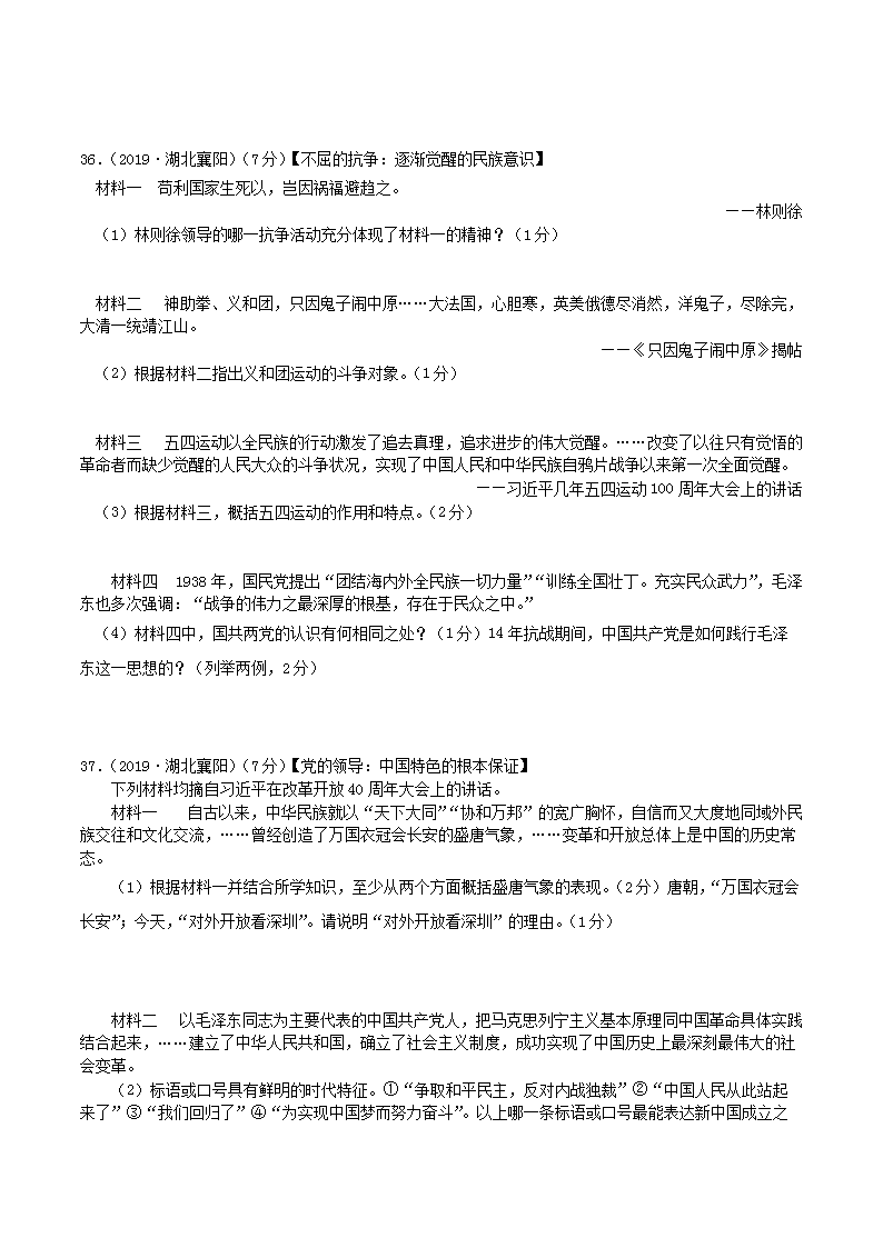 【文档名称】 2019年湖北省襄阳市中考历史真题及答案(Word版).doc