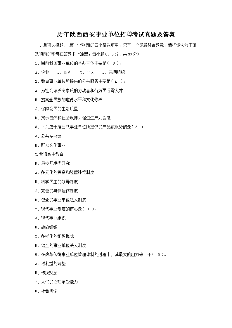 【文档名称】 历年陕西西安事业单位招聘考试真题及答案(Word版).doc