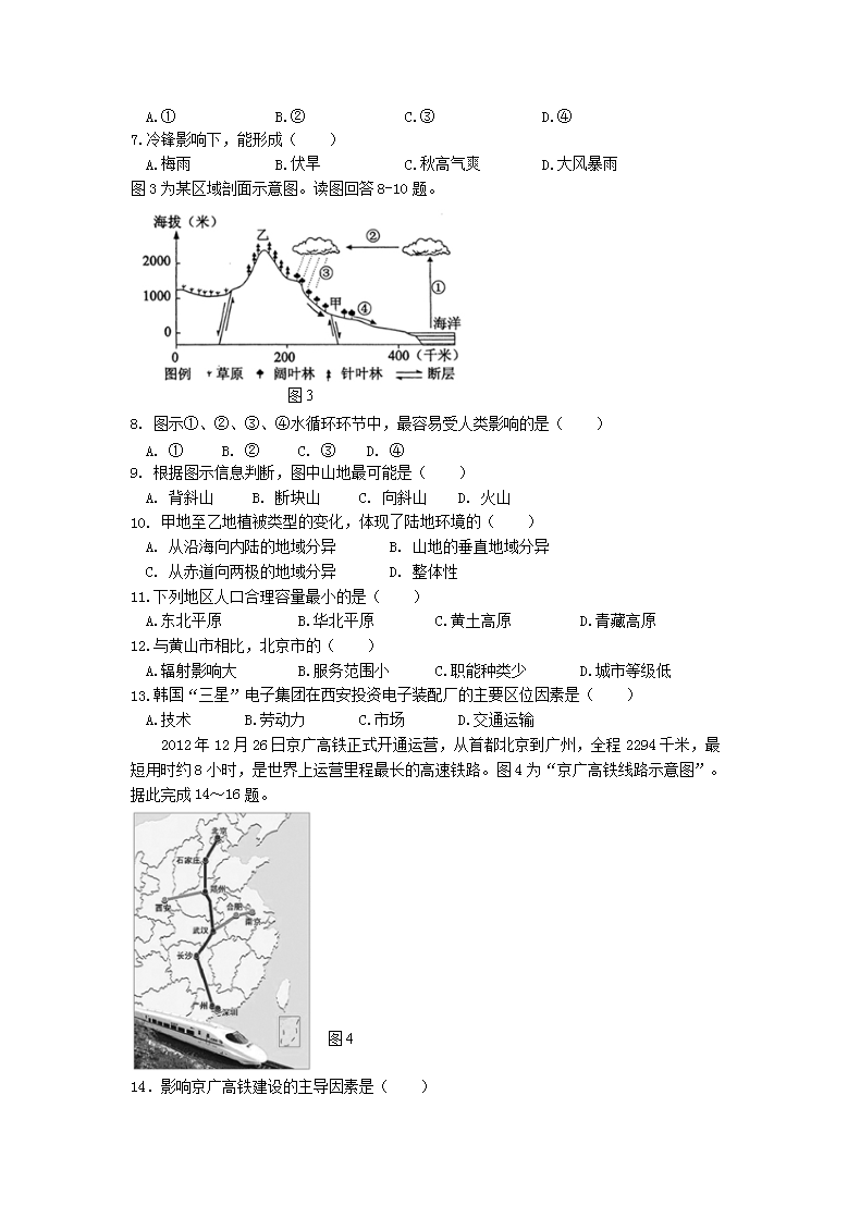 【文档名称】 2018年辽宁普通高中会考地理真题及答案(Word版).doc