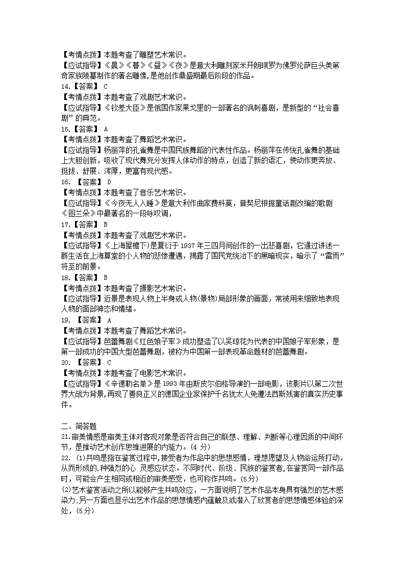 【文档名称】 2017年江西成人高考专升本艺术概论真题及答案(Word版).doc