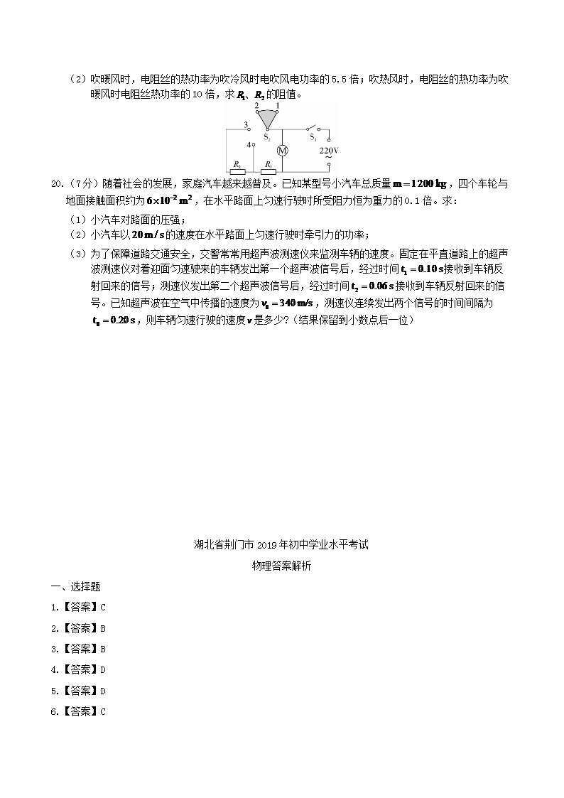 【文档名称】 2019年湖北省荆门市中考物理真题及答案(Word版).doc
