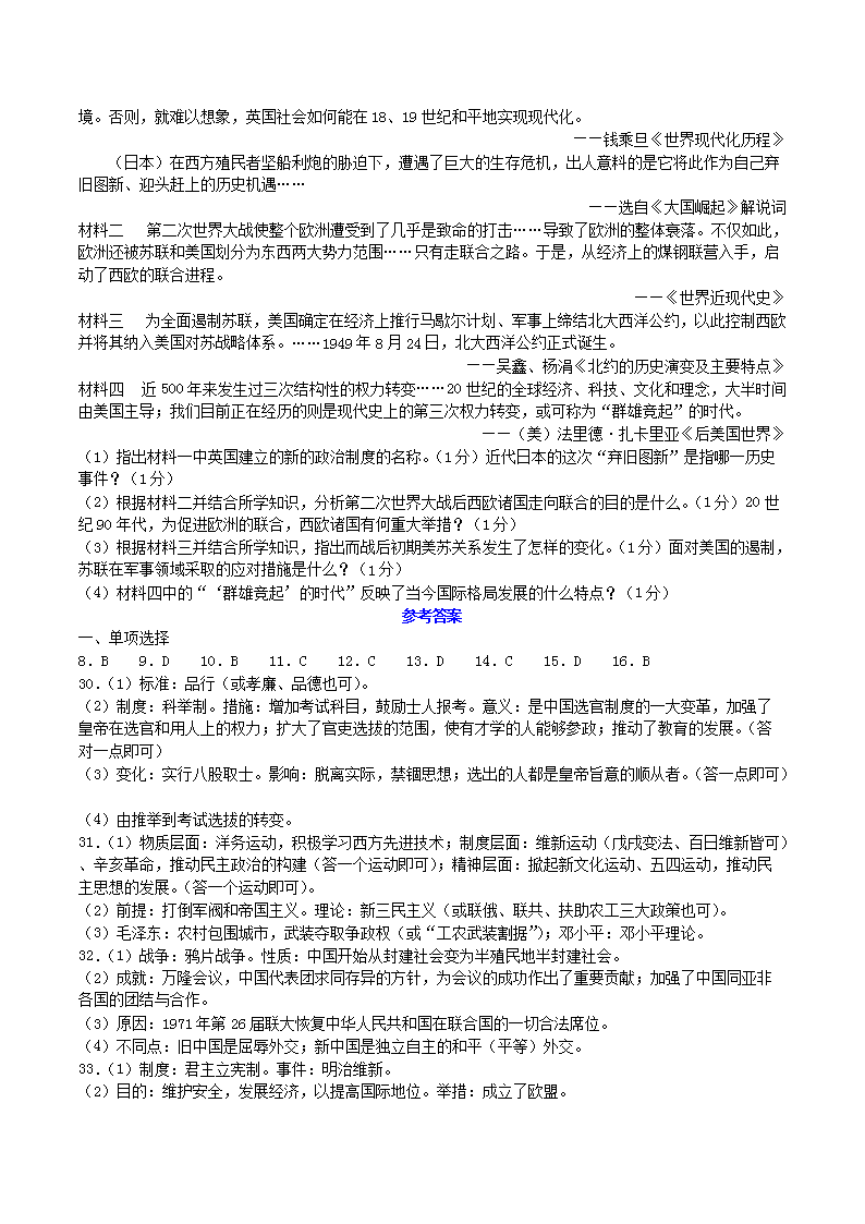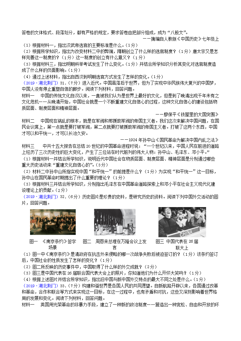 【文档预览】 无忧考网整理发布2019年湖北省荆门市中考历史真题及答案(Word版),前五页预览如下: