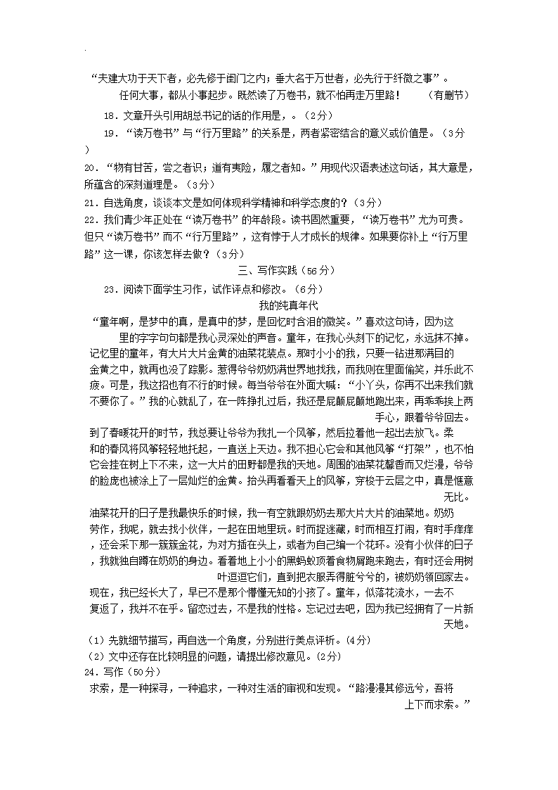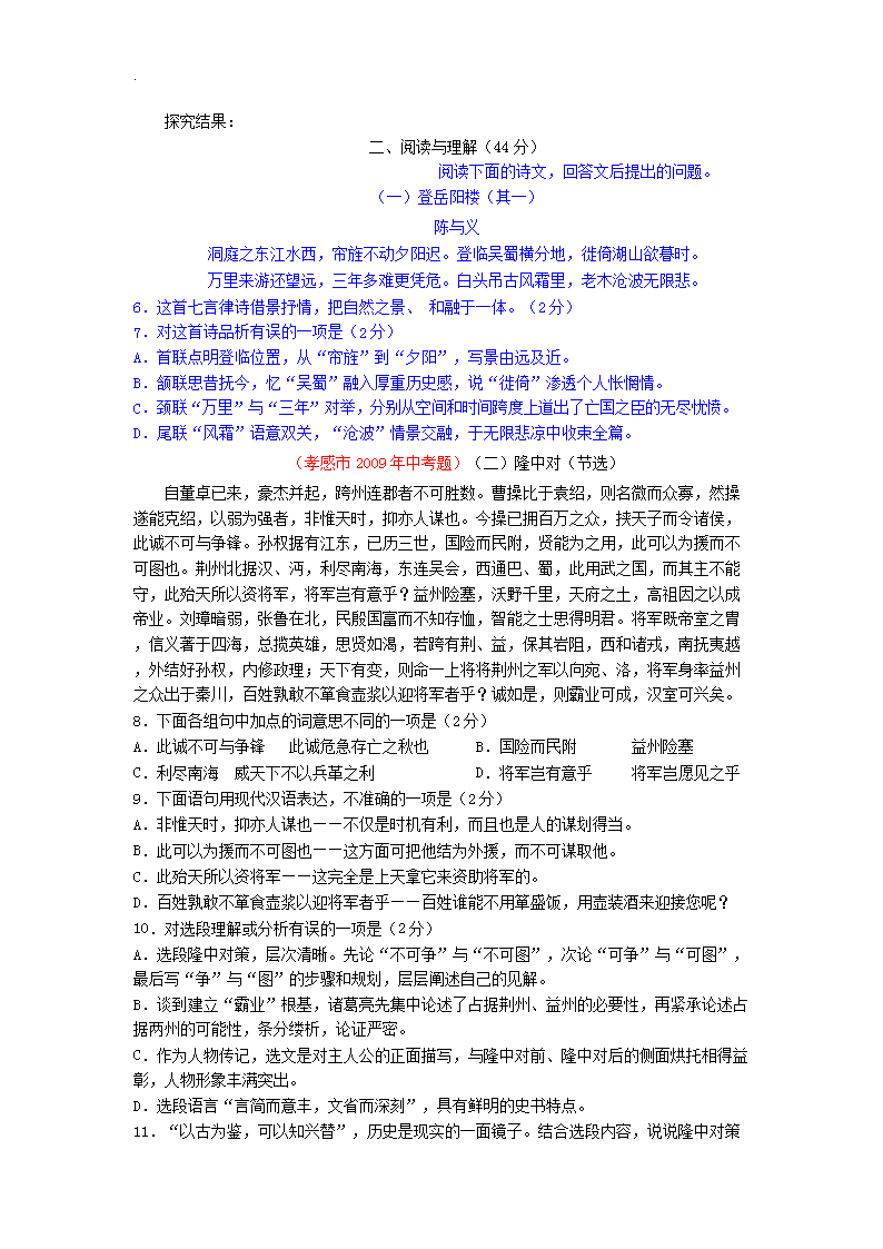 【文档名称】 2019年湖北省孝感市中考语文真题及答案(Word版).doc