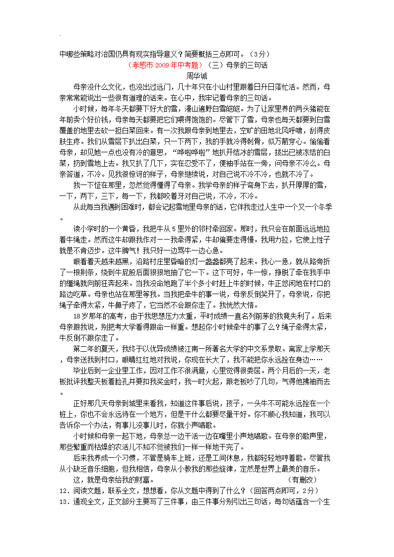 【文档预览】 无忧考网整理发布2019年湖北省孝感市中考语文真题及答案(Word版),前五页预览如下: