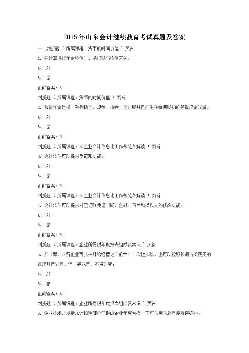 【文档名称】 2015年山东会计继续教育考试真题及答案(Word版).doc