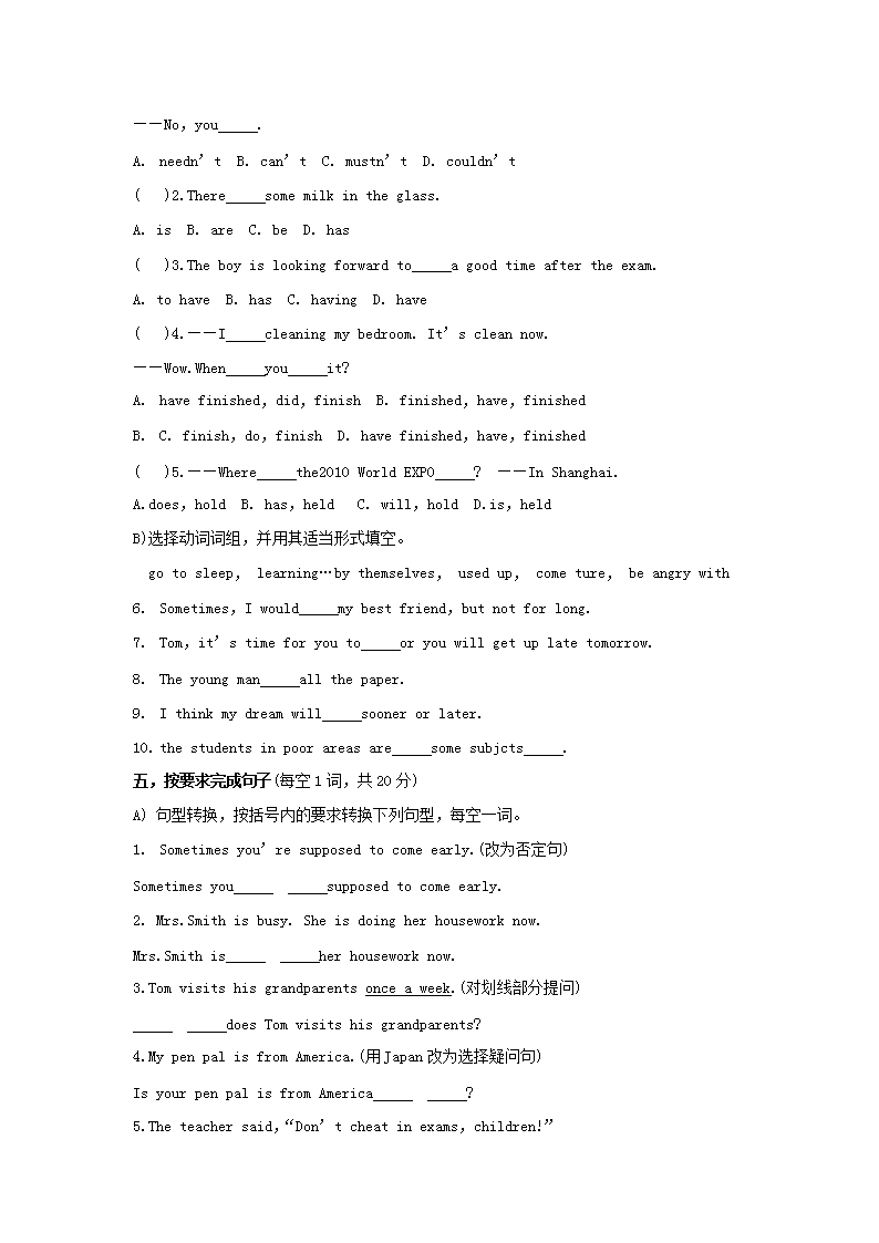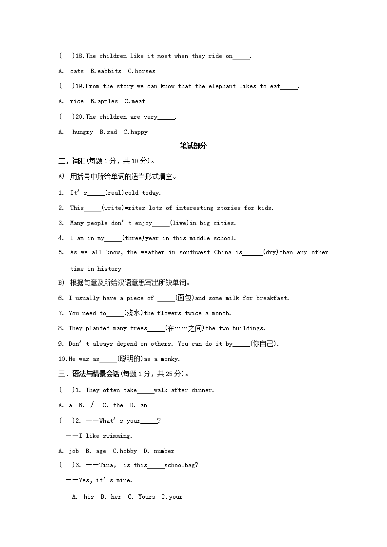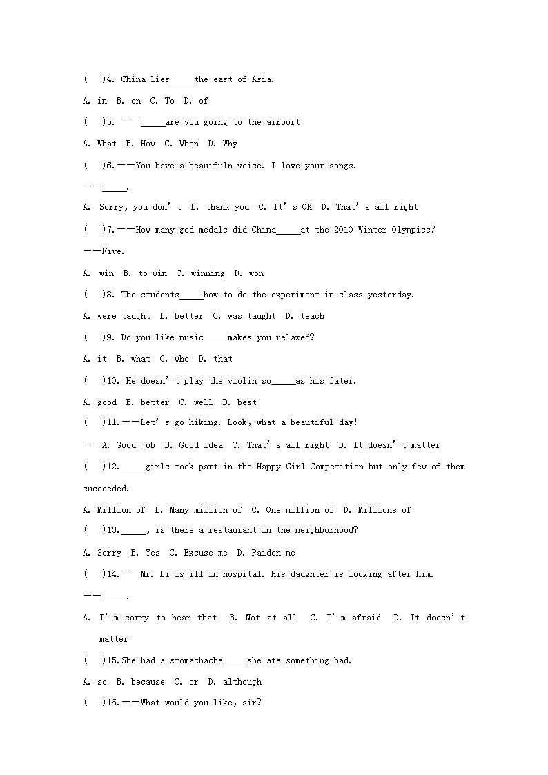 【文档预览】 无忧考网整理发布2010年甘肃省定西市中考英语试题及答案(Word版),前五页预览如下:
