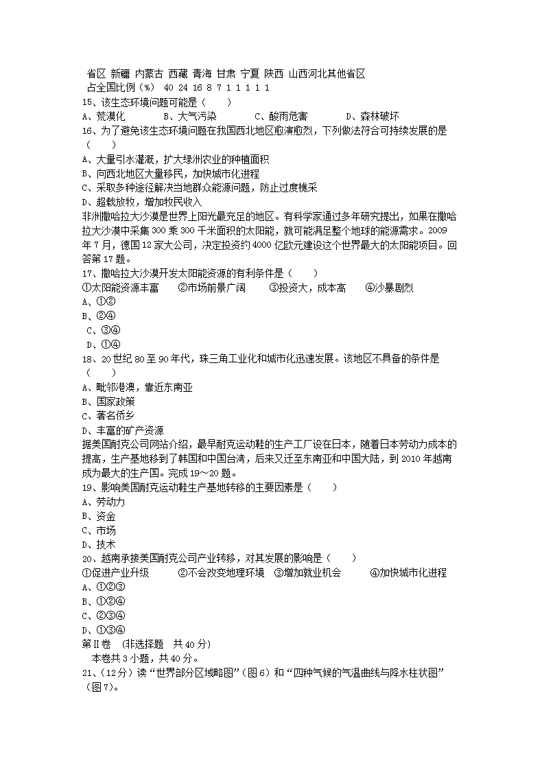 【文档预览】 无忧考网整理发布2012年辽宁普通高中会考地理真题及答案(Word版),前五页预览如下: