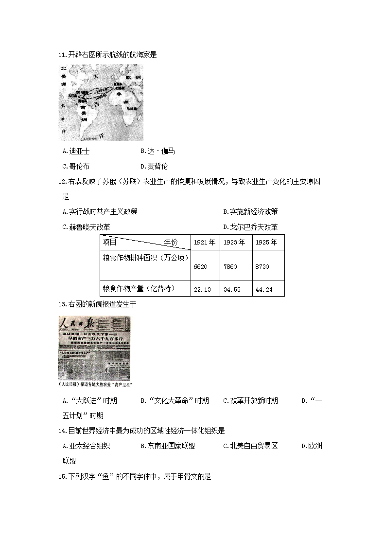 【文档名称】 2012年辽宁普通高中会考历史真题及答案(Word版).doc