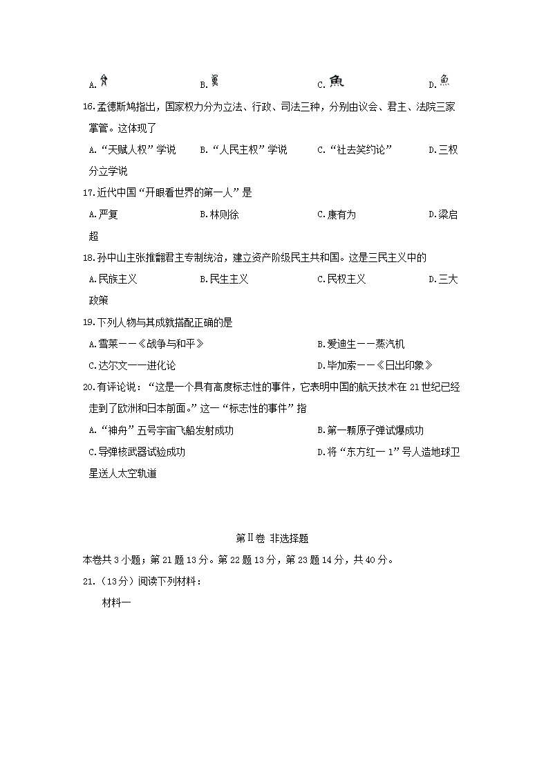 【文档预览】 无忧考网整理发布2012年辽宁普通高中会考历史真题及答案(Word版),前五页预览如下: