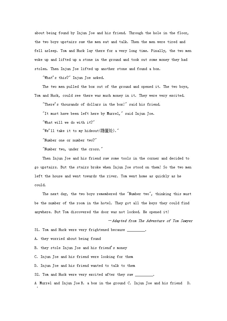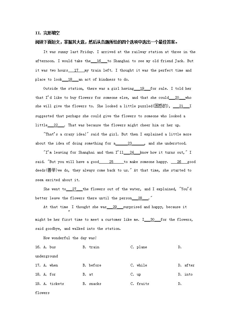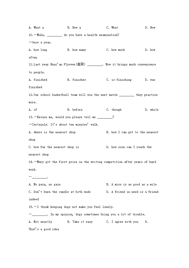 【文档名称】 2020江苏省淮安市中考英语真题及答案(Word版).doc