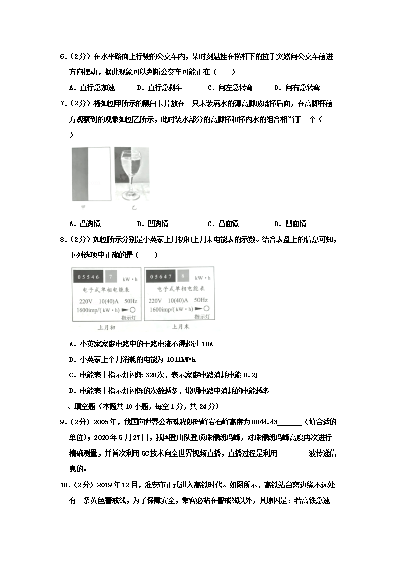【文档名称】 2020江苏省淮安市中考物理真题及答案(Word版).doc