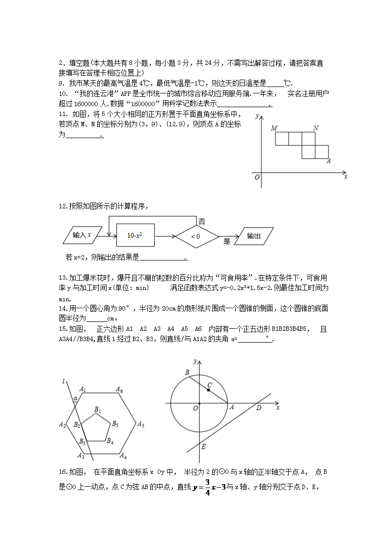 【文档名称】 2020江苏省连云港市中考数学真题(Word版).doc