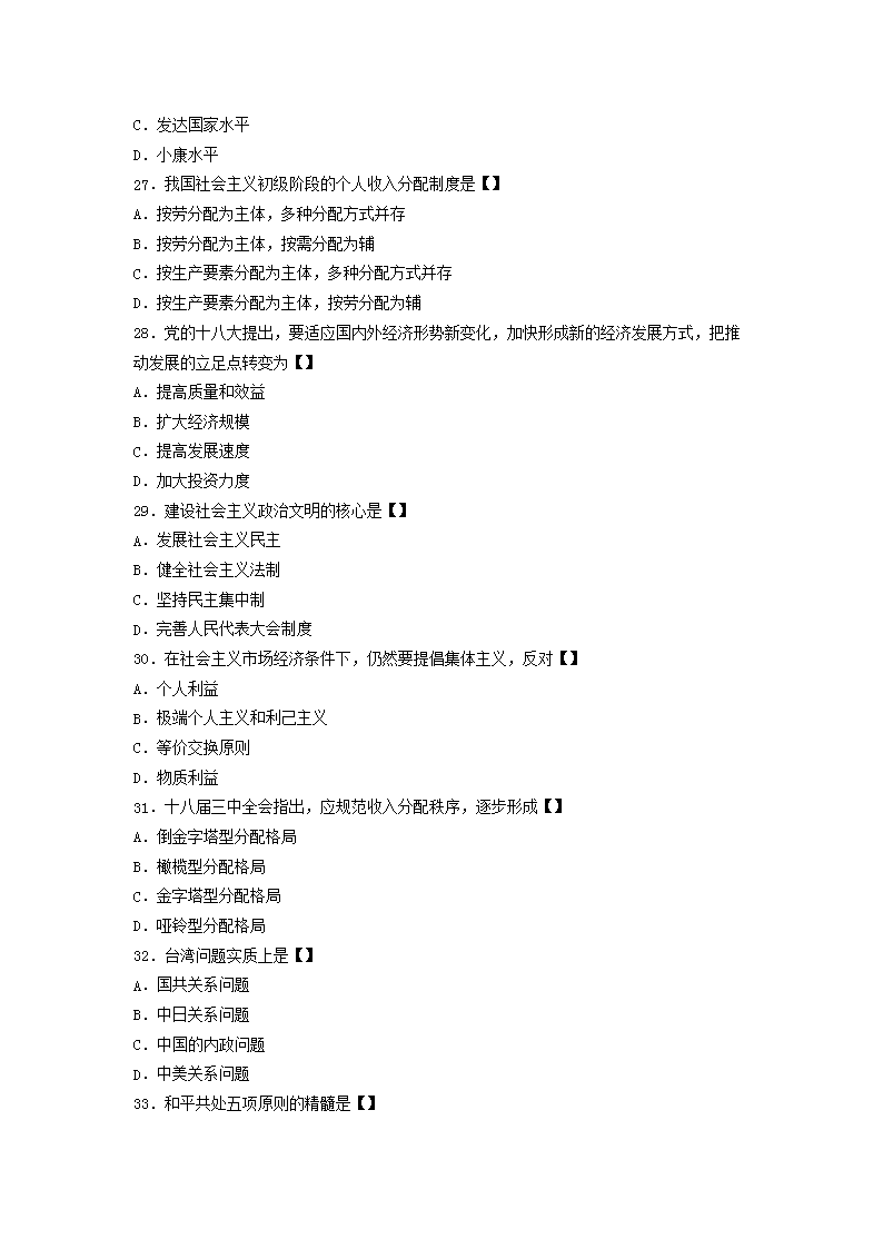【文档名称】 2017年吉林成人高考专升本政治真题及答案(Word版).doc
