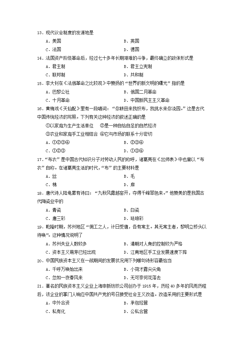 【文档名称】 2011年河南普通高中会考历史真题及答案(Word版).doc