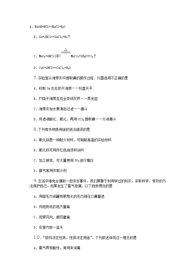 【文档名称】 2018年河南普通高中会考化学真题及答案(Word版).doc