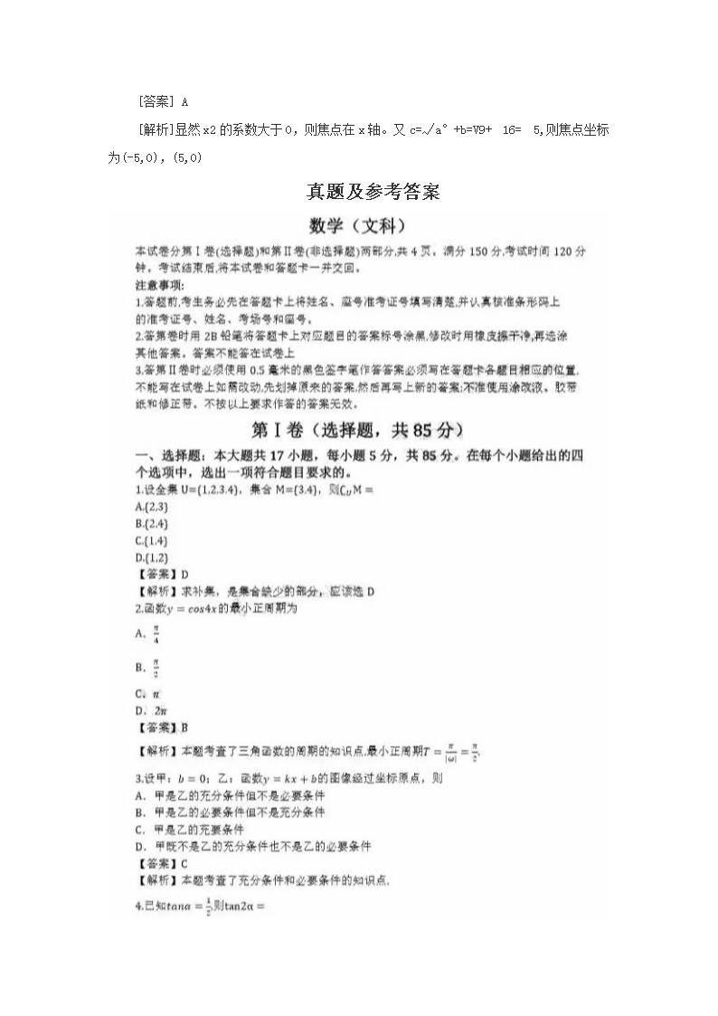 【文档名称】 2019年吉林成人高考高起点数学(文)真题及答案(Word版).doc