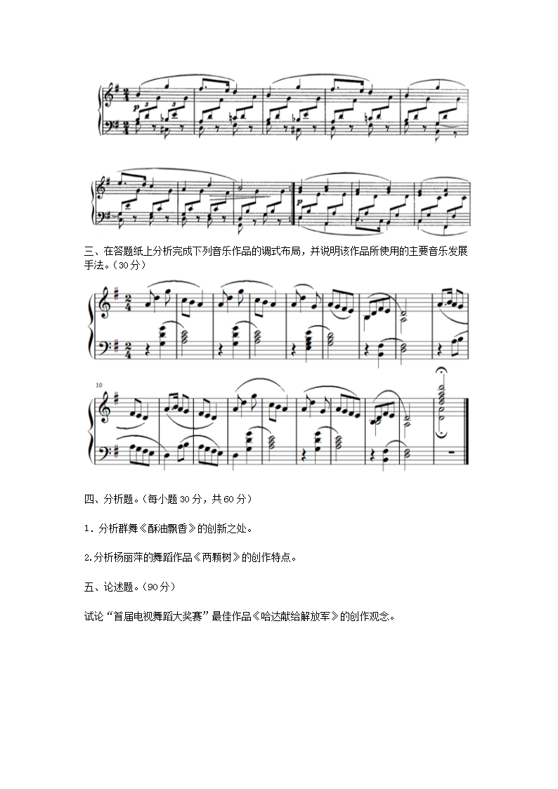 【文档名称】 2015年浙江温州大学音乐(含舞蹈)作品分析考研真题(Word版).doc