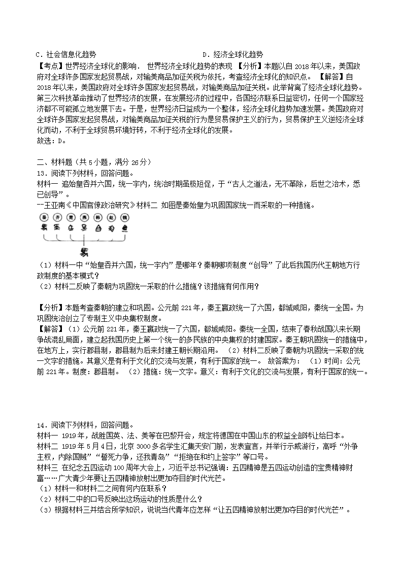 【文档名称】 2019年湖北省咸宁市中考历史真题及答案(Word版).doc