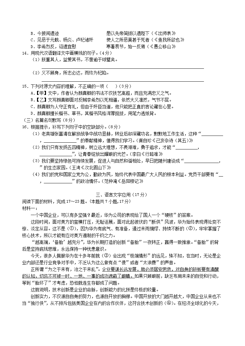 【文档名称】 2019年湖北省随州市中考语文真题及答案(Word版).doc