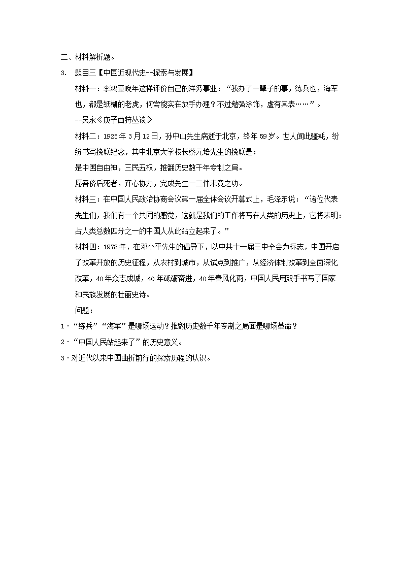 【文档名称】 2020年上海长宁中考历史真题及答案(Word版).doc