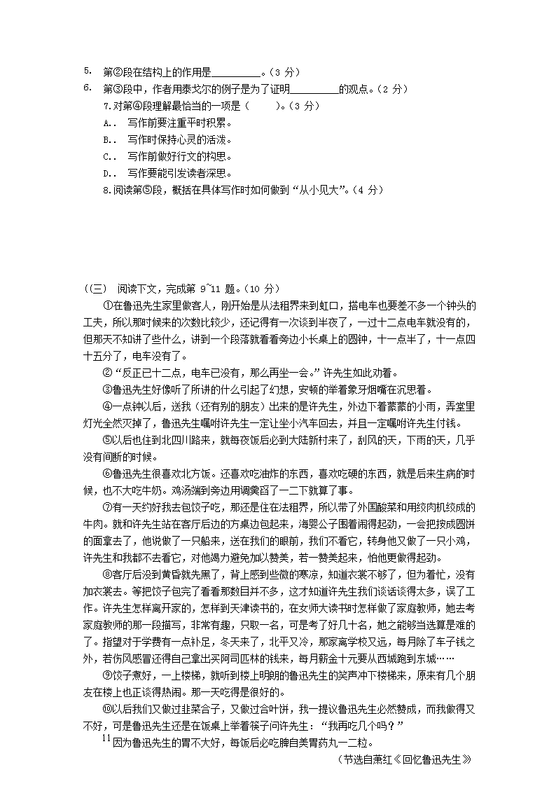 【文档名称】 2013年上海普通高中会考语文真题及答案(Word版).doc