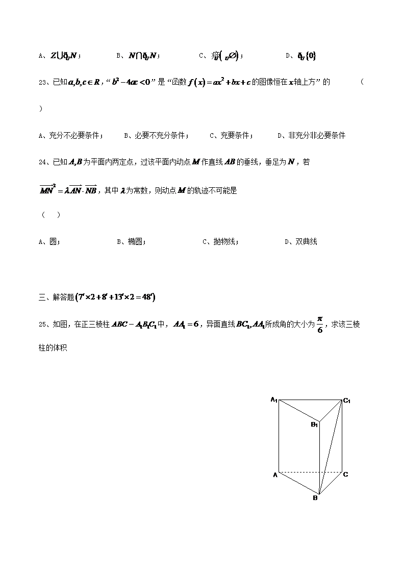 【文档名称】 2013年上海普通高中会考数学考试真题(Word版).doc