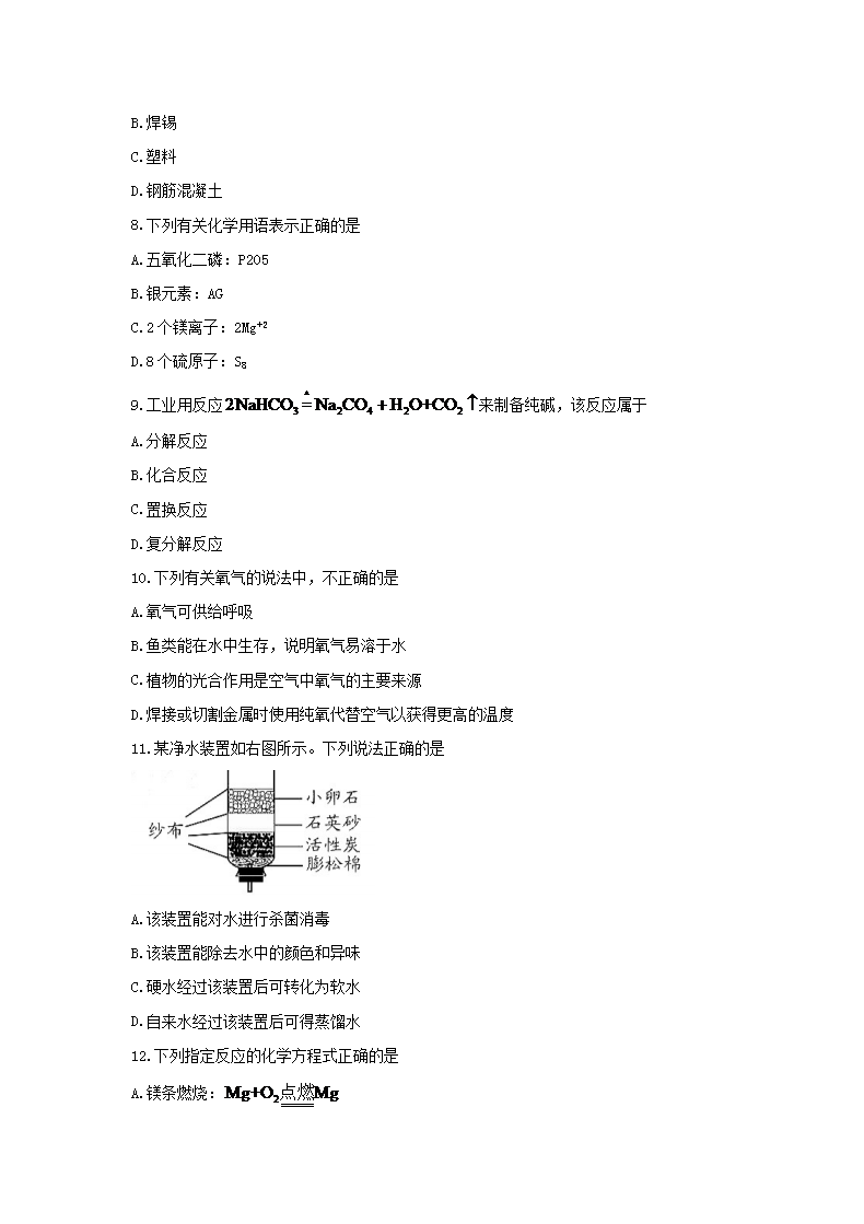 【文档名称】 2020江苏省苏州市中考化学真题及答案(Word版).doc