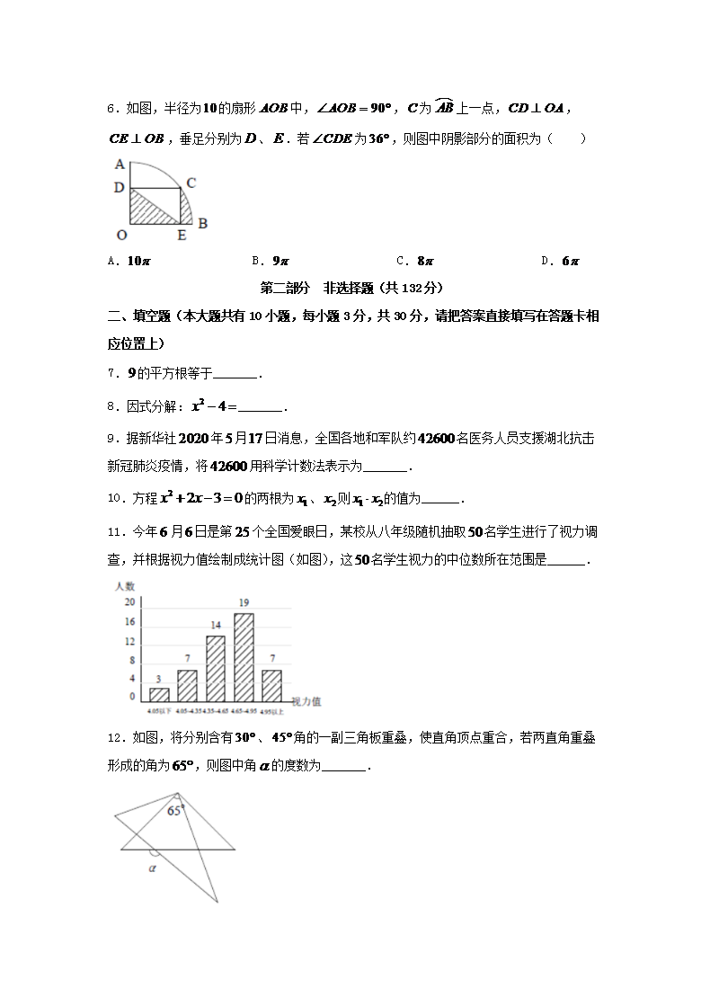 【文档名称】 2020江苏省泰州市中考数学真题(Word版).doc
