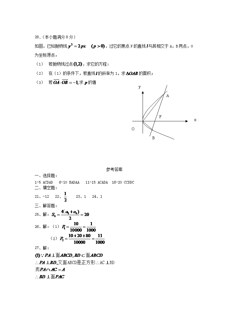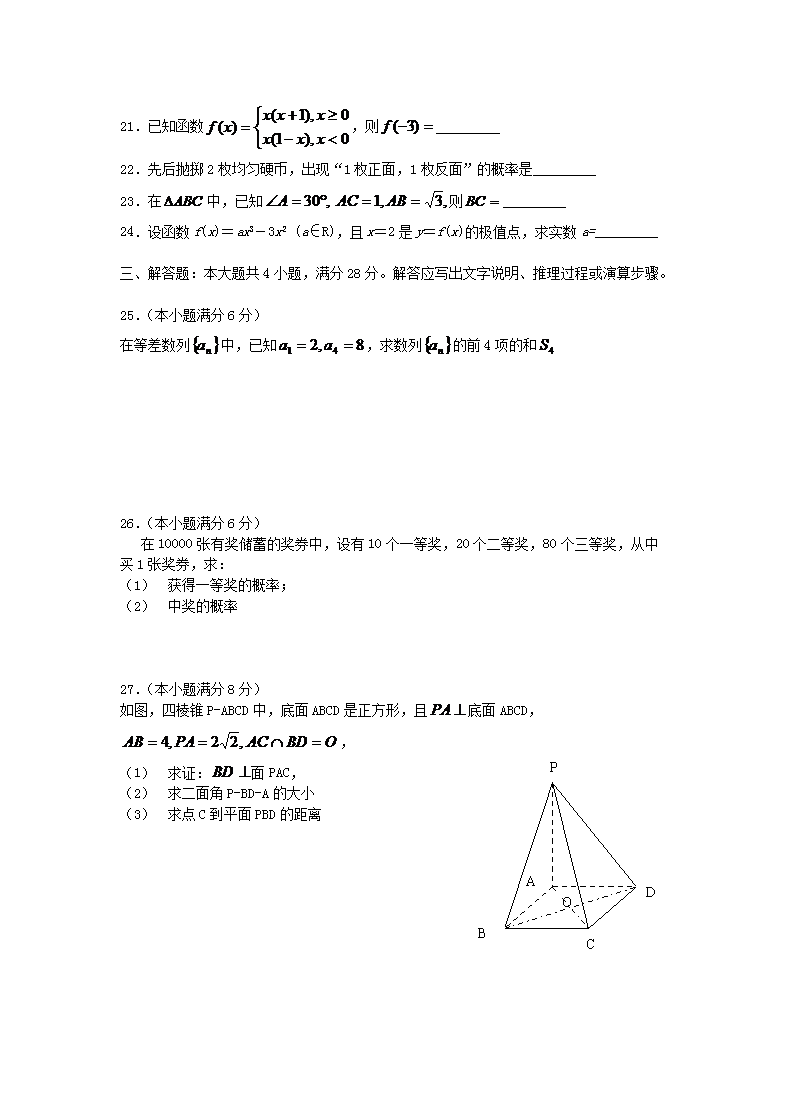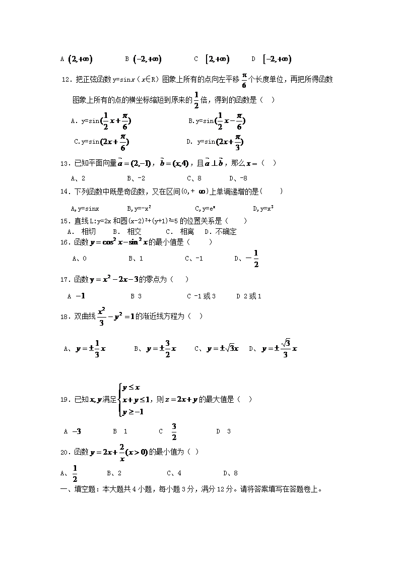 【文档名称】 2014年广西普通高中会考数学真题及答案(Word版).doc