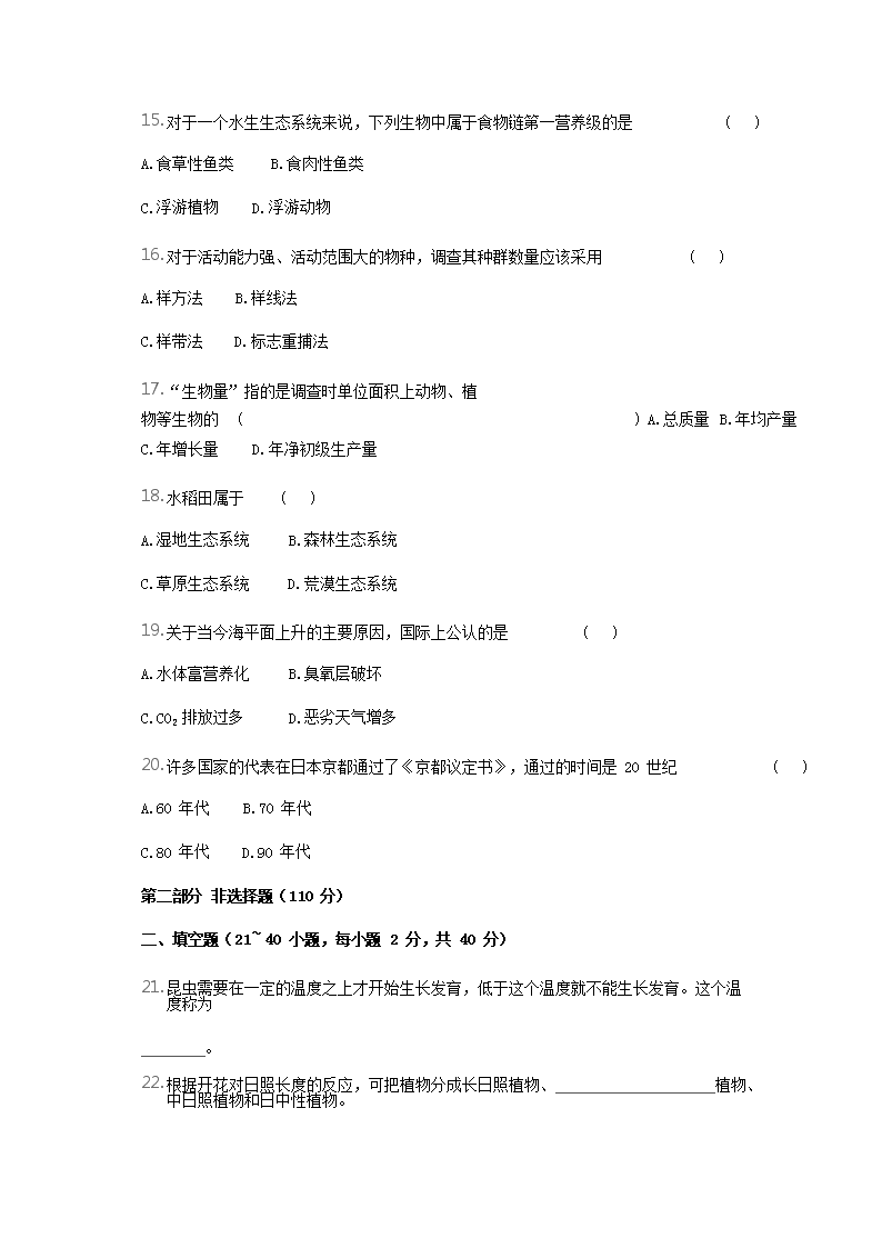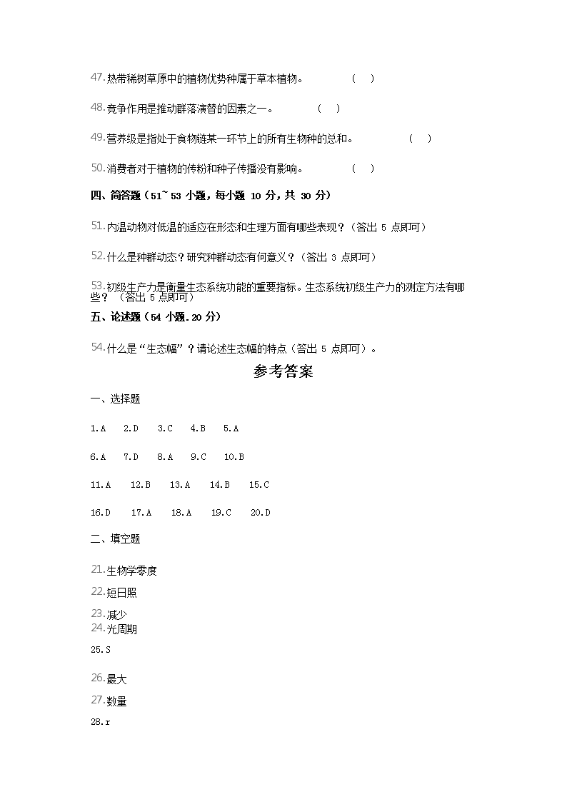 【文档名称】 2019年湖南成人高考专升本生态学基础真题及答案(Word版).doc
