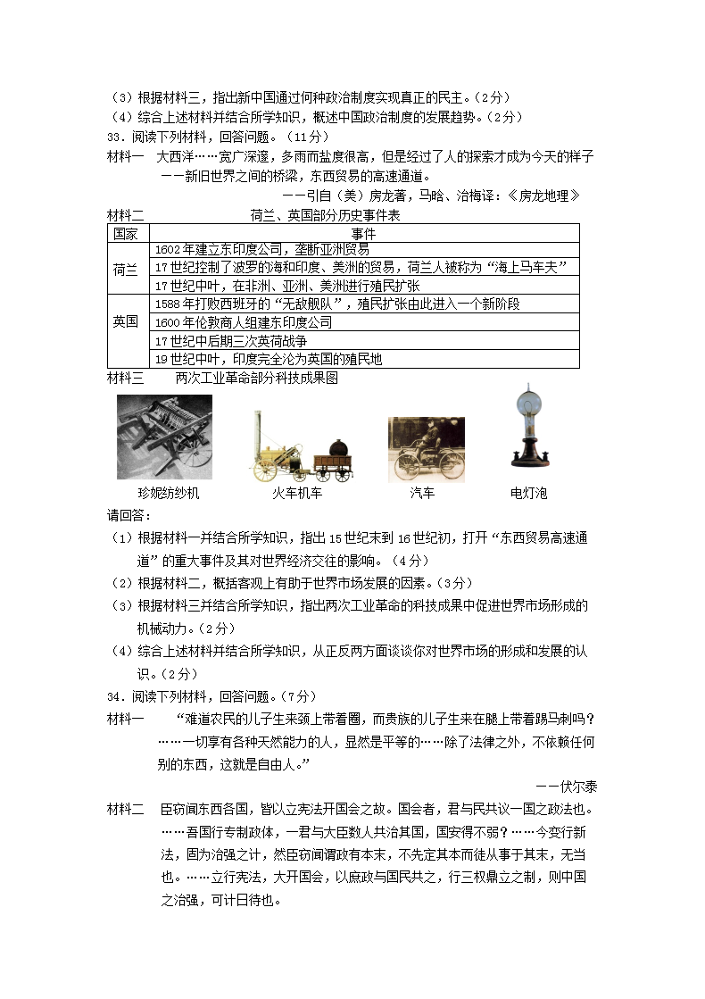 【文档名称】 2015年广西普通高中会考历史真题及答案(Word版).doc