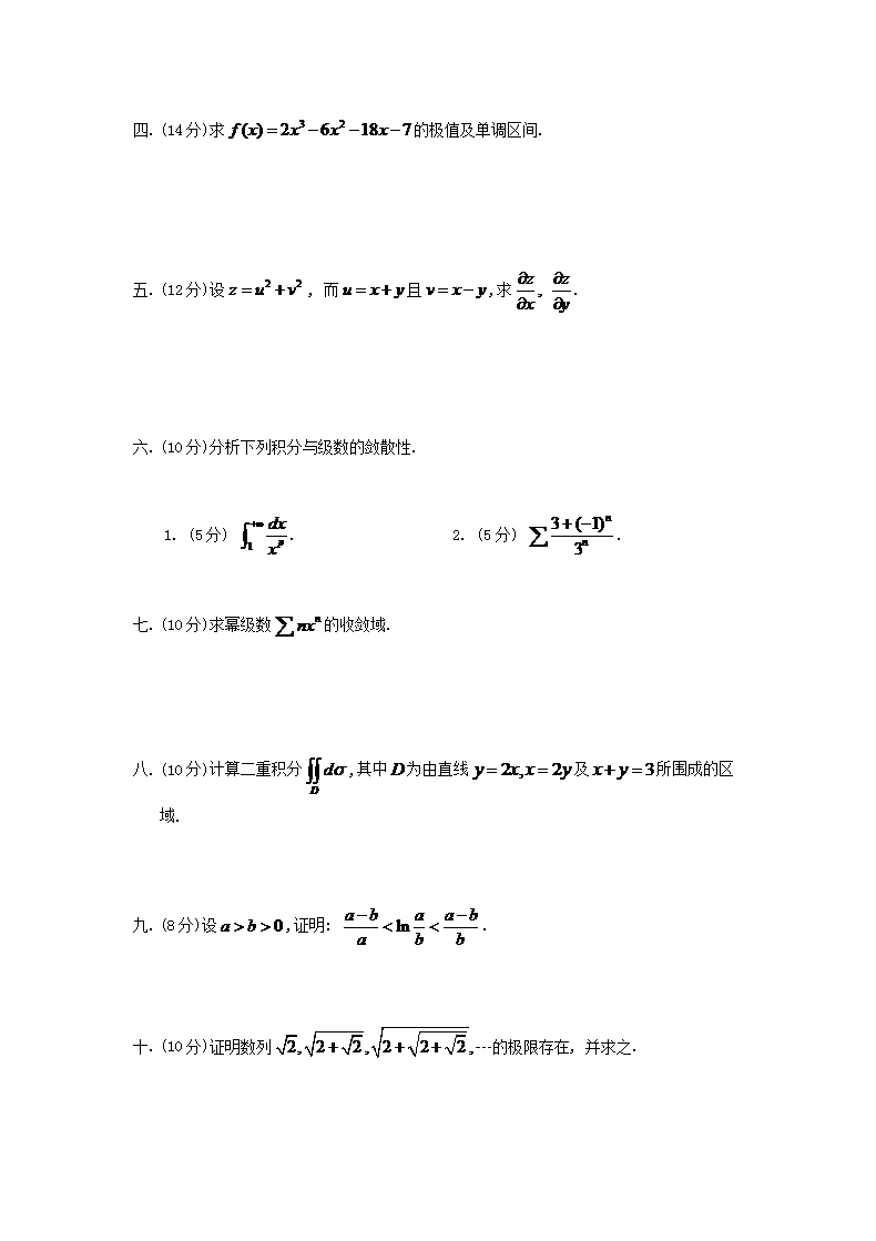 【文档名称】 2013年重庆理工大学数学分析考研真题A卷(Word版).doc