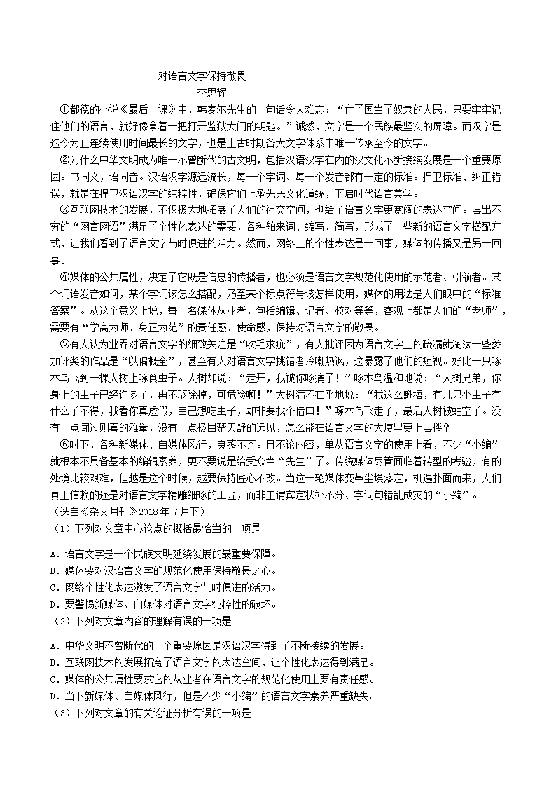 【文档名称】 2019年广西梧州市中考语文真题及答案(Word版).doc