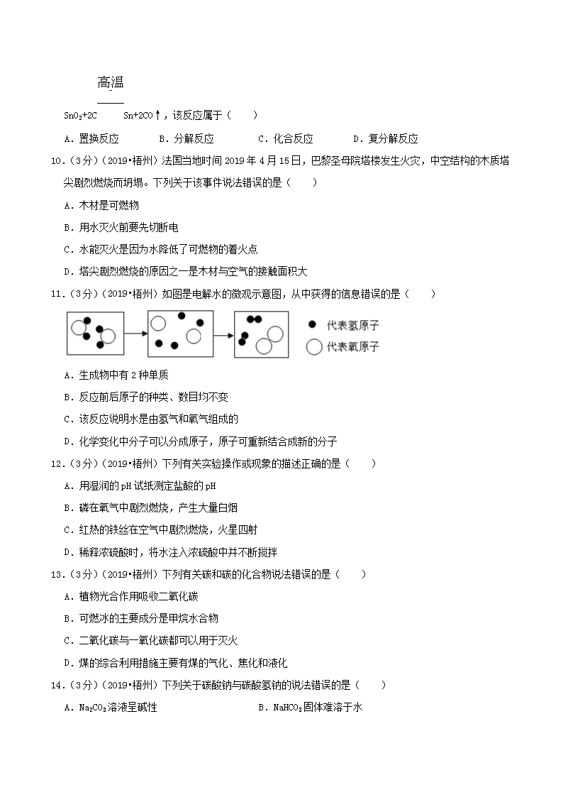 【文档名称】 2019年广西梧州市中考化学真题及答案(Word版).doc