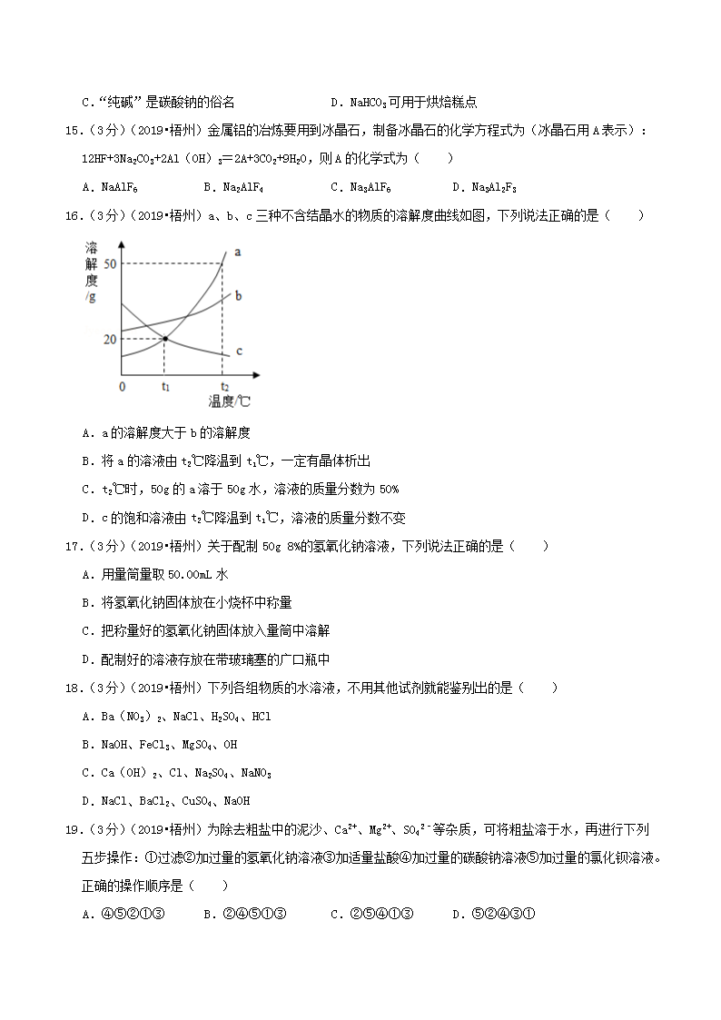 【文档预览】 无忧考网整理发布2019年广西梧州市中考化学真题及答案(Word版),前五页预览如下:
