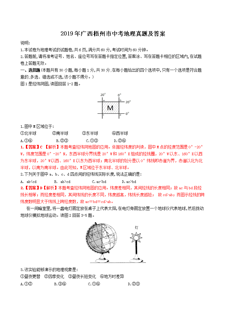 【文档名称】 2019年广西梧州市中考地理真题及答案(Word版).doc