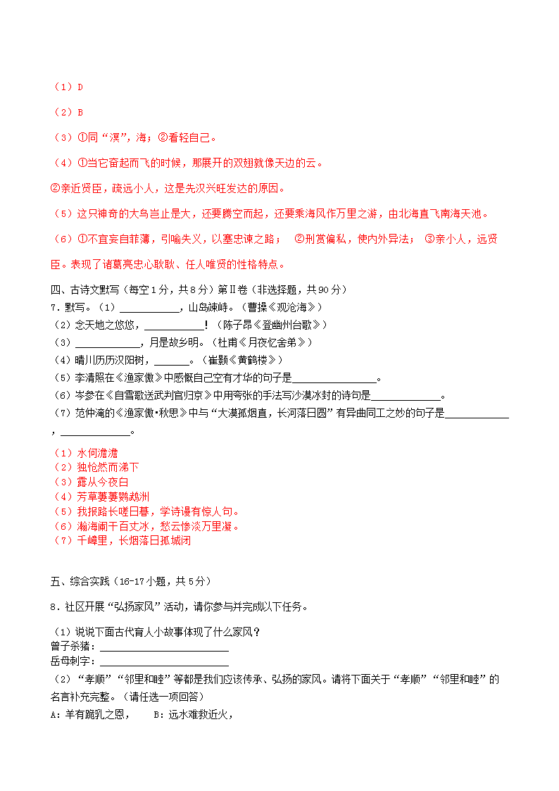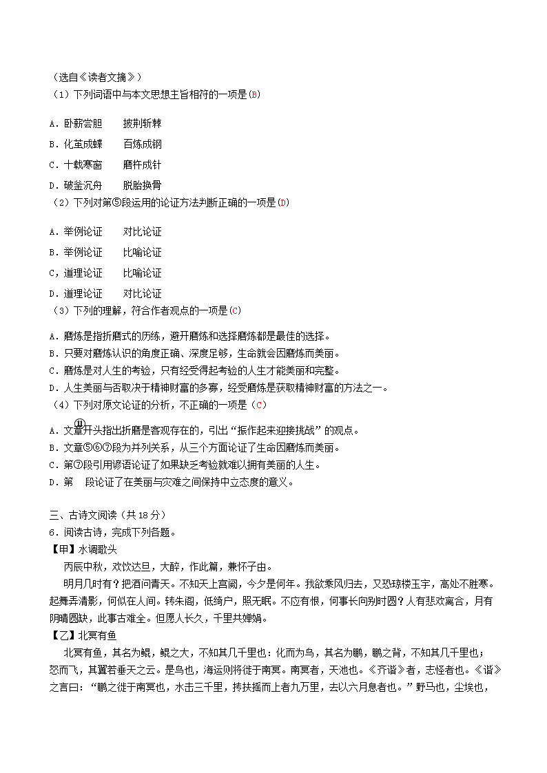 【文档预览】 无忧考网整理发布2019年广西贵港市中考语文真题及答案(Word版),前五页预览如下:
