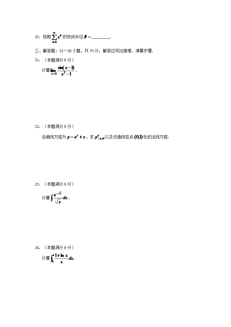 【文档名称】 2015年河南成人高考专升本高等数学一真题及答案(Word版).doc